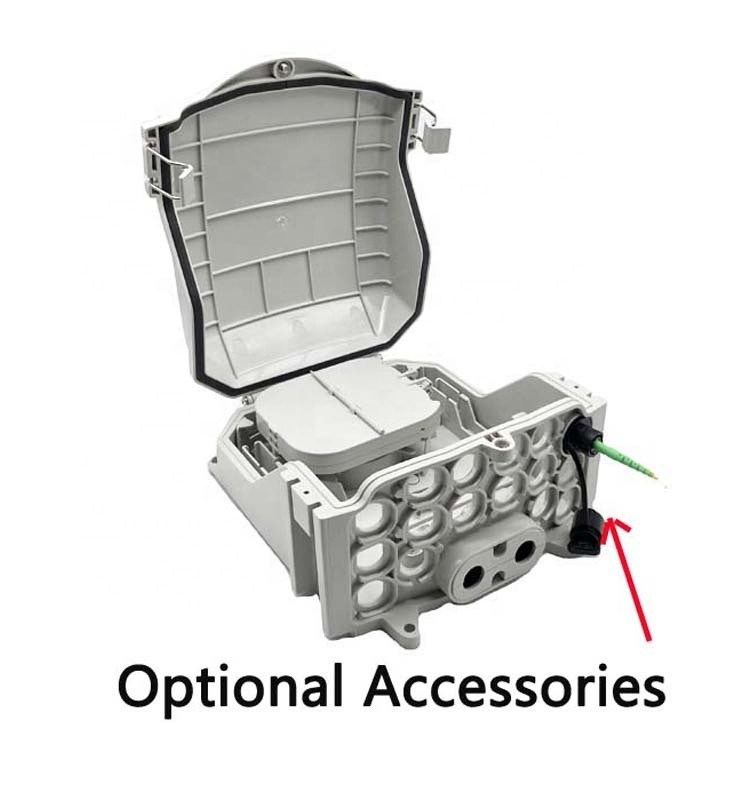 Het vakje van de vezel optische distributie wordt gebruikt als aansluitpunt voor de voederkabel om aan dalingskabel in het communicatienetwerksysteem van FTTx te verbinden. De vezel die, het verdelen, distributie kan in deze doos verbindt worden gebruikt en ondertussen biedt het stevig bescherming en beheer voor het FTTx-netwerkgebouw.